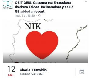 “Errausketa eta osasuna” hitzaldia Zarautzen Conferencia en Zarautz “Incineración y salud”