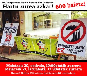 Erraustegiaren aurkako giza katean parte hartzeko mahai informatiboa eta txartel banaketa jarriko da Elgoibarko Kalegoen Plazan