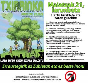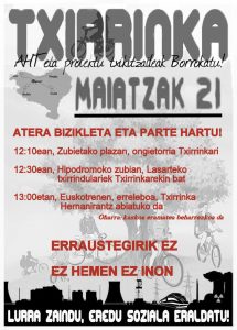 Erraustegiaren Aurkako Usurbilgo taldeak eta Zubieta Lantzen Erraustegiaren Aurkako taldeak bat egiten dute Txirrinkaren ekimenarekin. 11:00etan anbulategiko aparkalekura gerturatu Txirrinkan parte hartu nahi duzuen guztiak. Deialdi irekia! 11:50tan Urbileko gasolindegi ondoko bidegorria hasten/amaitzen den lekuan, usurbildarrok ongietorria emango diogu Txirrinkari. 12:00ean Txirrinkari ongietorria emateko Zubietako plazara bizikletekin gerturatzeko deia egiten …